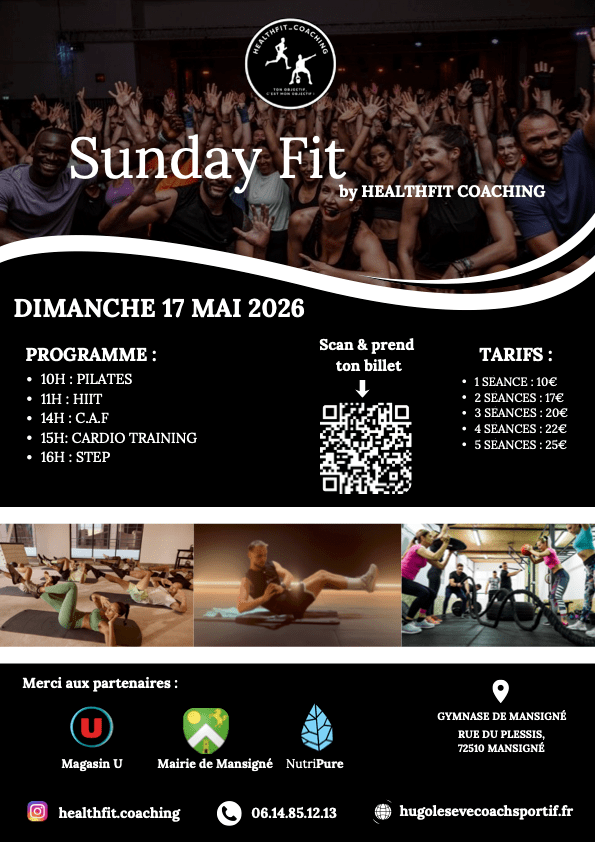 Le 17 mai 2026, viens vivre une journée fitness complète à Mansigné avec 5 disciplines, une ambiance motivante et une vraie énergie collective.